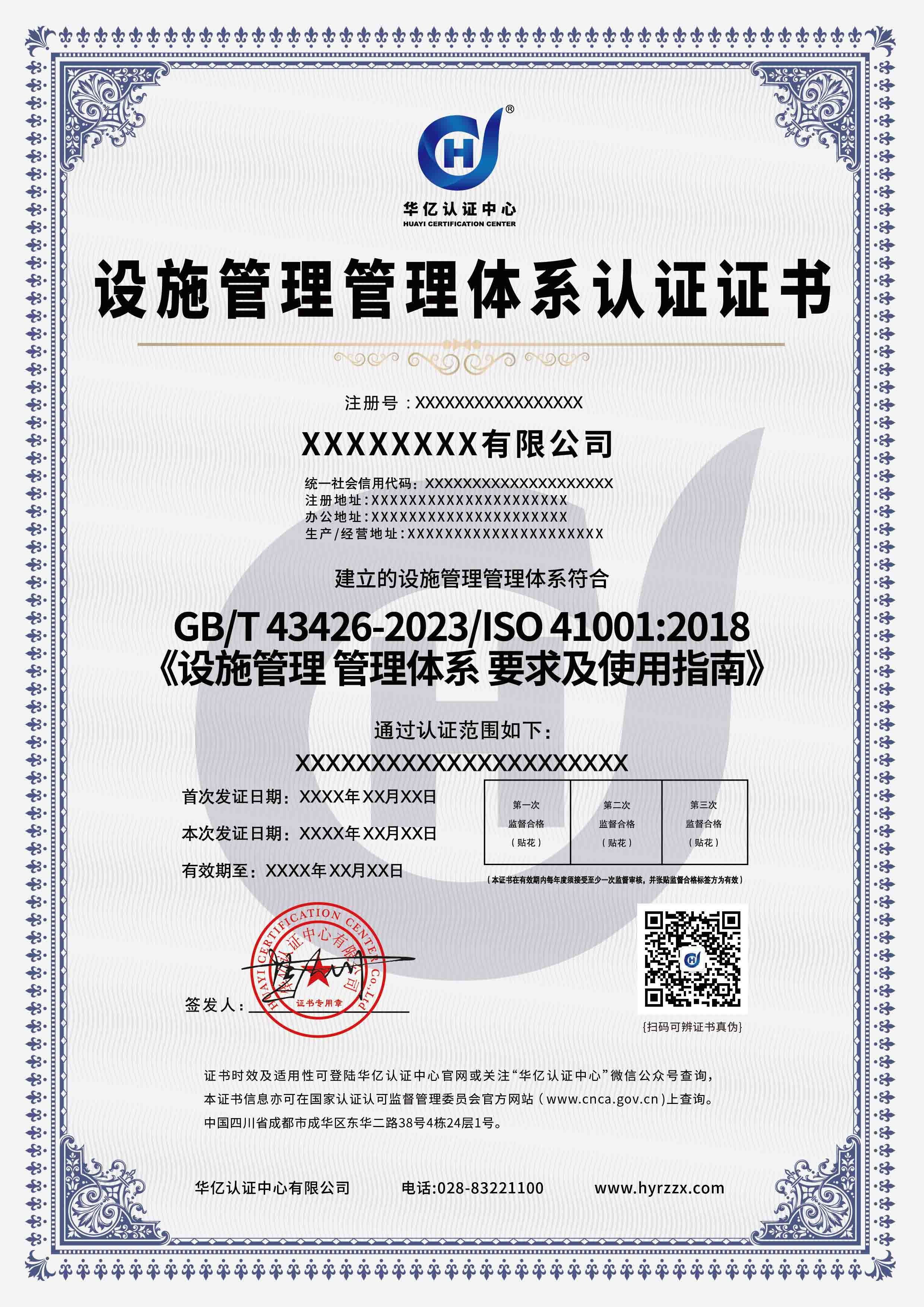 设施管理管理体系认证证书